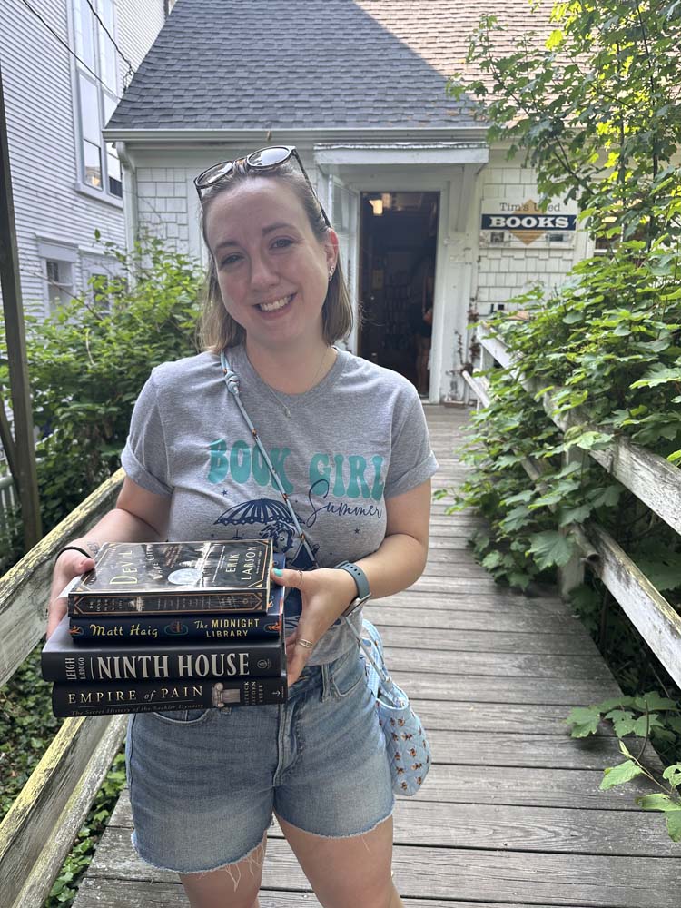 I knew I wanted to go to Tim’s Used Books while we were there, and it was actually cute and hidden back from the road by a bunch of trees. I got four books there: The Devil in the White City by Erik Larson, The Midnight Library by Matt Haig, Ninth House by Leigh Bardugo, and Empire of Pain: The Secret History of the Sackler Dynasty by Patrick Radden Keefe.