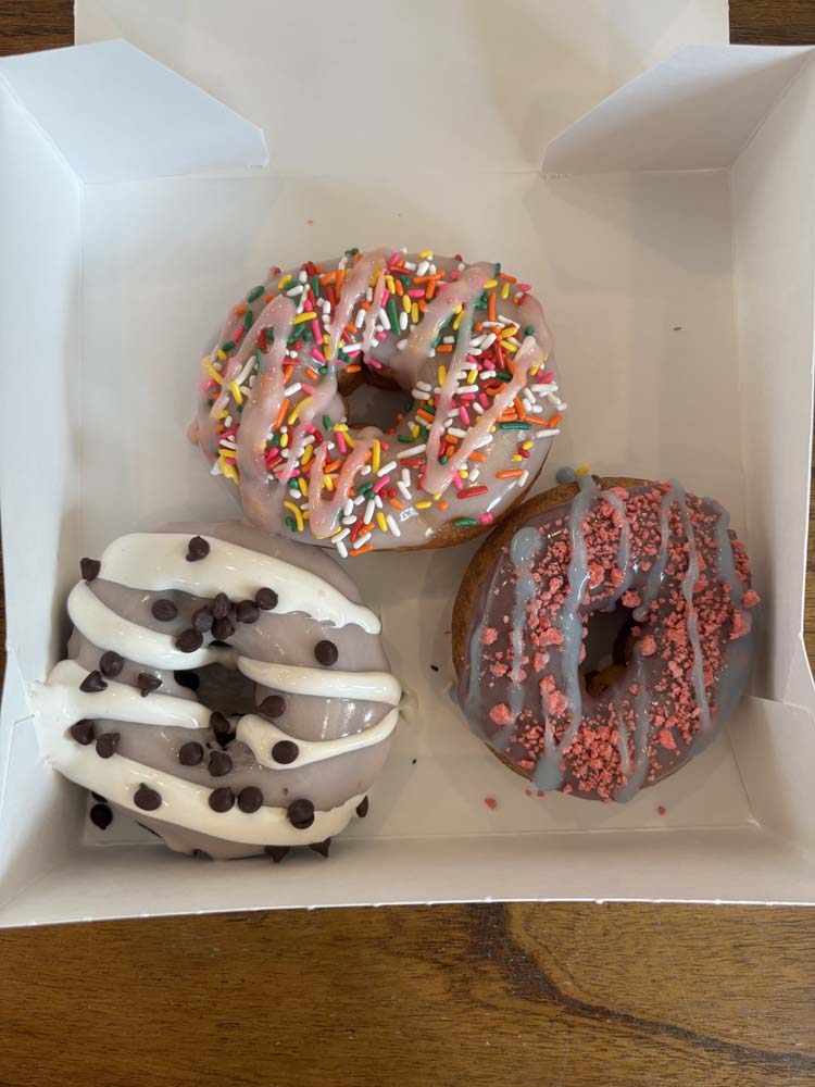 Josh and I split three donuts: birthday, berry explosion, and purple cow. SO SO good. They’re made (or rather decorated) right as you order them, and you can watch the employees dip the donuts behind the counter. The donuts reminded us of the ones we had in Cleveland at Goldie’s Donuts.