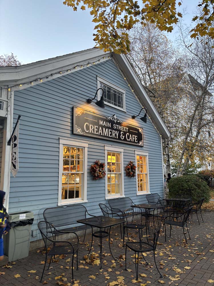 For dinner, we went to Village Pizza and split a marghrita pizza, and for an after-dinner treat, we went to the Main Street Creamery and Cafe to get ice cream. Josh got pumpkin cheesecake, and I got pumpkin Oreo.