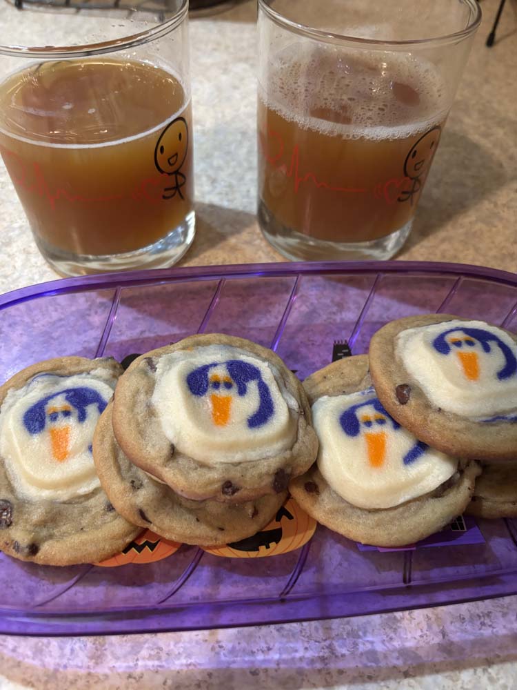 Then it was time for Spooky Night! We make pizzas in the shape of a pumpkin and a ghost, then have fun drinks (apple cider with rum) and festive cookies. Our movie of choice was Beetlejuice Beetlejuice since we watched the first one last year. Earlier in the month, we had a Spooky Night Lite with fun drinks, cookies, and we watched Sleepy Hollow.