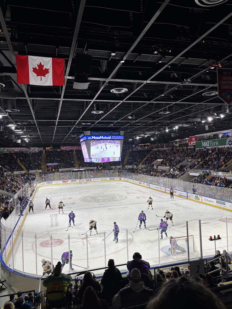 Another Springfield Thunderbirds game! Josh and I went together this time, and we made it a date night and got dinner beforehand. The Thunderbirds played as the Springfield Ice-O-Topes, which is related to The Simpsons. They won 3–2 against the Providence Bruins.